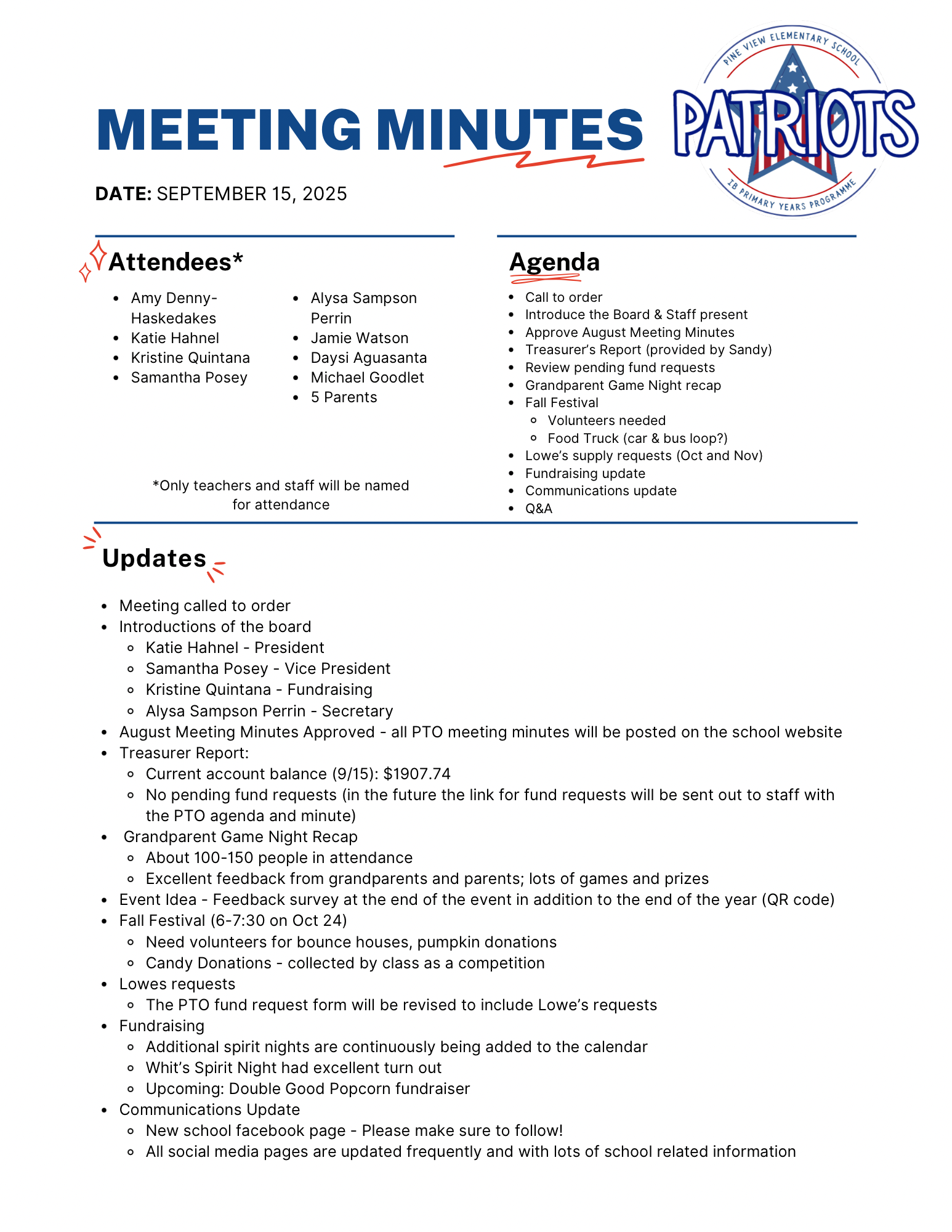 October 2024 Minutes – No meeting due to hurricane